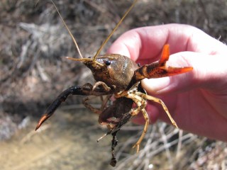 | Crayfish – an invasive species. I managed to trap this one under my boot so we could get a better look at it. |