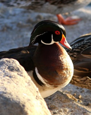 Mew Gull twice. While we were driving through Bullhead City in the mid-afternoon, we briefly saw it fly over the car. Around 6 p.m., it showed up at Katherine Landing and loafed with the Ring-billed Gulls. Alas, the Thayer’s Gull seen earlier in the week did not show up. It was interesting to note that numbers of California Gulls were way, way down, with only a handful of individuals seen. Herring Gulls were absent altogether. We did see five Horned Grebes on Lake Mohave, and three Wood Ducks in the area. A male Red-breasted Merganser was unusual for this time of year, and another county year bird.