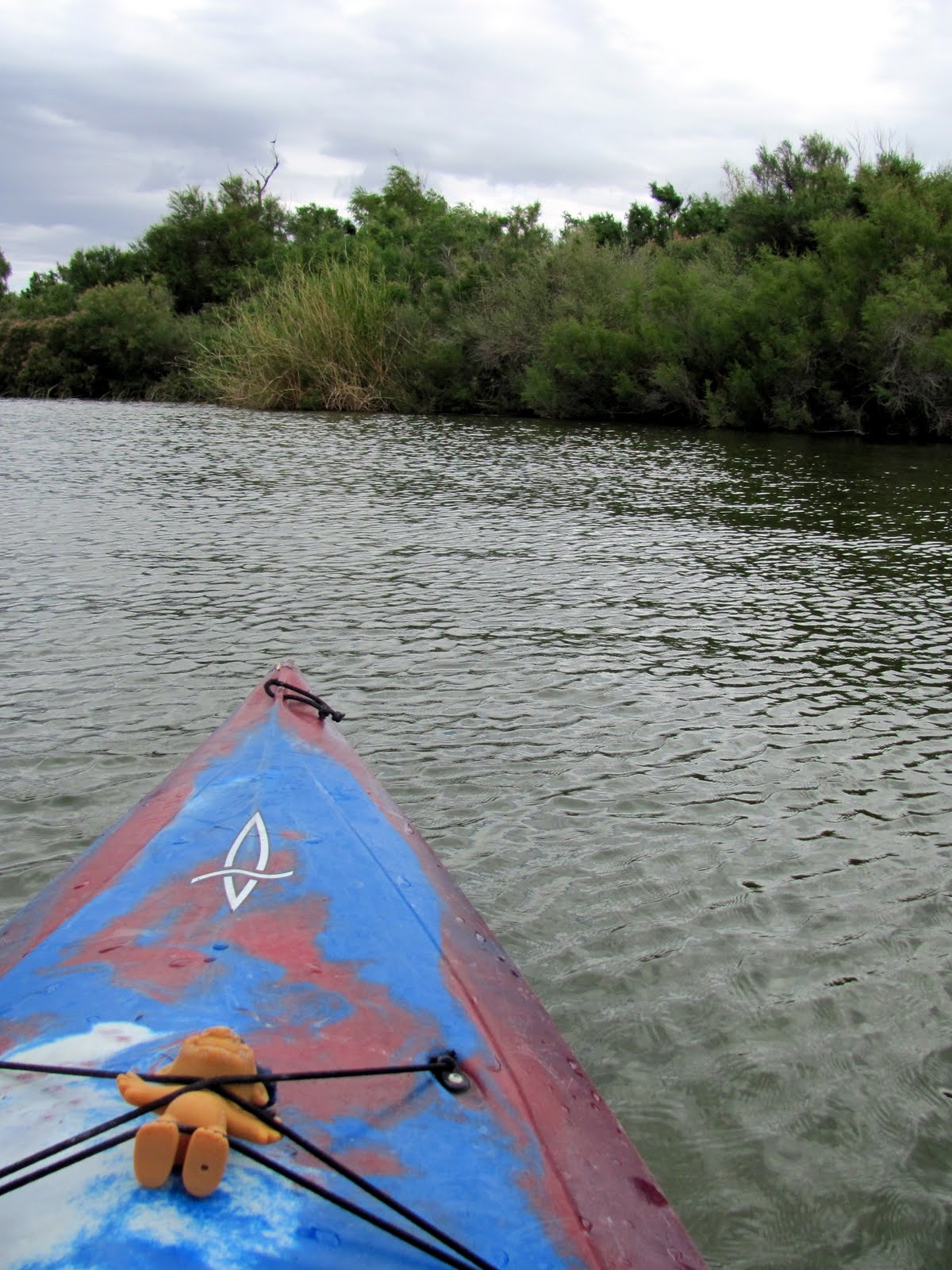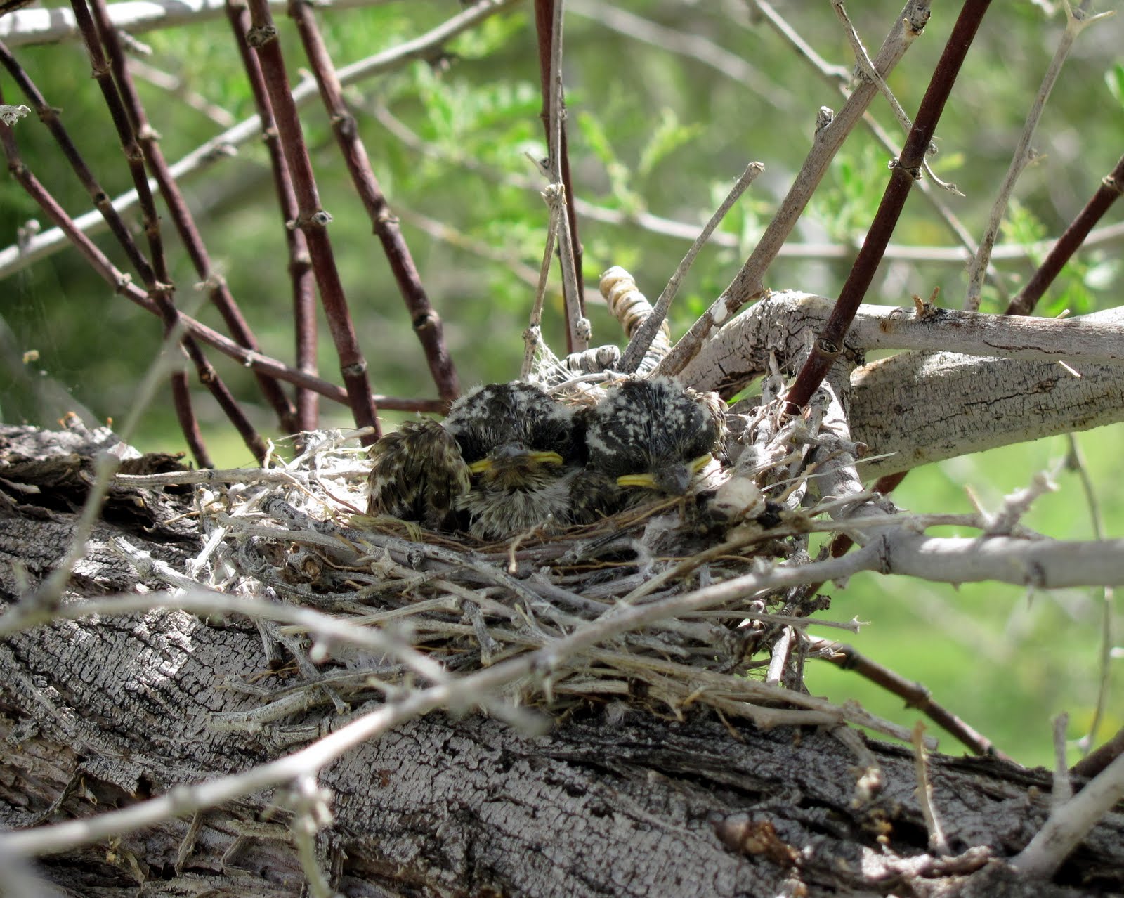 Since I was also working for the city, I was working a bit less than the others on the project, but I was still plenty busy. I surveyed one site twice a week, another site once a week, and several sites only twice over the season. The twice a week site was my “extreme intensive” at ‘Ahakhav Tribal Preserve. I was pleased as punch to visit that site 16 times over the field season! Since it’s a habitat creation site, it’s easy to walk around and find nests, and it is also full of birds. The Vermilion Flycatchers and Lawrence’s Goldfinches breeding there were especially fun to watch. The site I visited once a week was actually immediately adjacent to the hill we scan the north end of Lake Havasu from, which we call “Lehman Hill”. The hill is the southern boundary of the plot, which extends north about a kilometer in a dense tamarisk/mesquite stringer with patches of arrowweed and some big willows. The breeders weren’t as interesting, but the site was great for migrants. Since the site ran along the shore of the lake, I surveyed it by kayak several times.