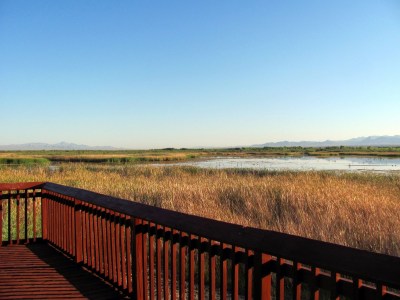 The platform is sturdier than it looks, but I wouldn’t recommend it for groups of more than two or for anyone without a sense of adventure. Hopefully, the refuge will eventually get around to demolishing this and other older platforms and replace them with sturdy public viewing areas. In the mean time, if you don’t want to climb the rickety stairs, there is enough of an opening in the reeds to bird from the ground. From here, you should be able to get a decent look at the bulk of the shorebirds on the lake. EDIT: This platform has been demolished and not replaced.