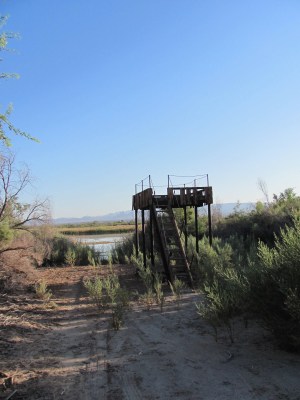 This platform provides the best overall view of the lake, overlooking most of the central portion. This is the better place to go for a short visit, birders without scopes, and for most ducks and herons. However, most of the shorebirds have been concentrating at the south end of the lake, not readily visible from the new platform. To get to the south end, park at that locked refuge gate and walk for a few hundred meters until reaching an opening with a view of the lake and an old, sketchy platform that looks like it’s ready to fall with the next heavy wind.