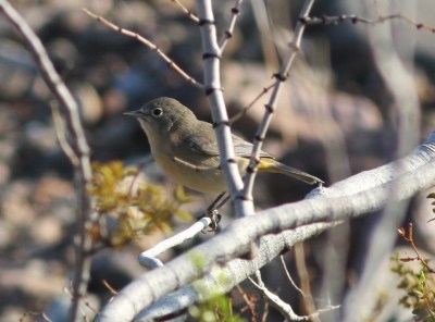 | Dusky Flycatcher. The short primary projection and long tail are visible in the photo; it was also giving a “whit” call in the field. |