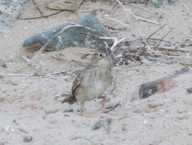 Birding along the state line between Arizona and California produces some interesting patterns. One thing we have noticed is that sometimes, you see a bird that is a much more interesting record on one side of this imaginary line than the other. Neotropic Cormorant is one example–they always seem to turn up in Arizona, but they are a Review Species in California. Similarly, a jaeger on the California side is a good bird for the inland counties, but all three jaegers are Review Species in Arizona. Yesterday, I saw one of these species: a Cassin’s Sparrow. While this species is common in southeastern Arizona, there are few records for the northern and western regions of the state. Rosenberg et al. only lists one record from the LCRV, in La Paz County. This summer, David and I found the first in Mohave County – around Peach Springs, we had several singing birds. This was a good year for them in northern Arizona, with reports across the northern tier of the state. Across the lake in California, Cassin’s Sparrow is a Review Species. There have been several records of singing and even breeding birds in San Bernardino County, but only in very good years.