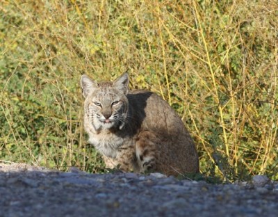 Most of our notable birds here turned out to be ducks, which are likely oversummering birds. In addition to the expected Mallards and Ruddy Ducks, there were Gadwall, Cinnamon Teal, a Northern Shoveler, and a Redhead. Fall migrants were numerous: an avocet, a Greater Yellowlegs, 2 Willets, 3 Marbled Godwits, a Least Sandpiper, and 2 Caspian Terns. Two Snowy Plovers were good to see, although we don’t know whether these were early migrants or potential (failed?) breeders. This was my first real taste of fall migration this season! Still, the highlight here was an unusual short-tailed bird that crossed the road in front of us…