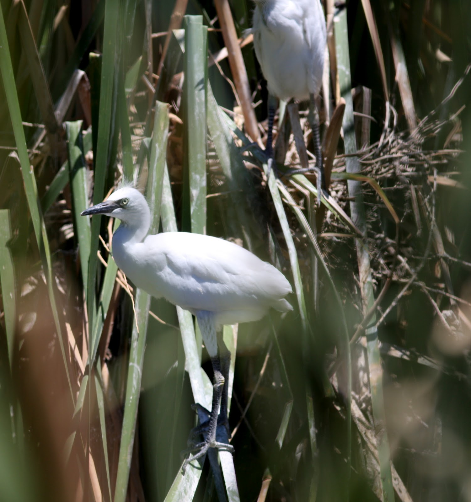 After this fine morning it was time to head home, but since the Parker Valley lies between Blythe and Lake Havasu City, there was still more birding to do. Several flooded fields in the area hosted gobs of Cattle Egrets and White-faced Ibis along with a few Long-billed Curlews and Marbled Godwits. We made a thorough check of the Twelvemile Slough Rookery, which includes nesting Cattle and Snowy Egrets and White-faced Ibis. None of these are common nesting birds in the LCRV, and this may be the only active nesting location for Cattle Egret and White-faced Ibis. All the more exciting to come here and count 950 Cattle Egret and 50 White-faced Ibis nests! The Cattle Egrets were particularly exciting, most nests holding two near-fledging chicks at varying stages of awkwardness.