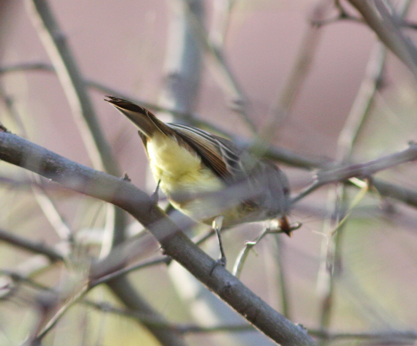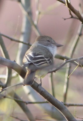 Just after 8:00 this morning, after about 15 minutes of birding, I was walking down the road at Mosquito Flats in Bill Williams River NWR, planning out my post to the listserv about the continued absence of the Nutting’s Flycatcher.  Of course it was at that moment that I heard that singular “WHEEP!”  I didn’t think I had missed it so much, but that sound brought a huge smile to my face. It’s back!