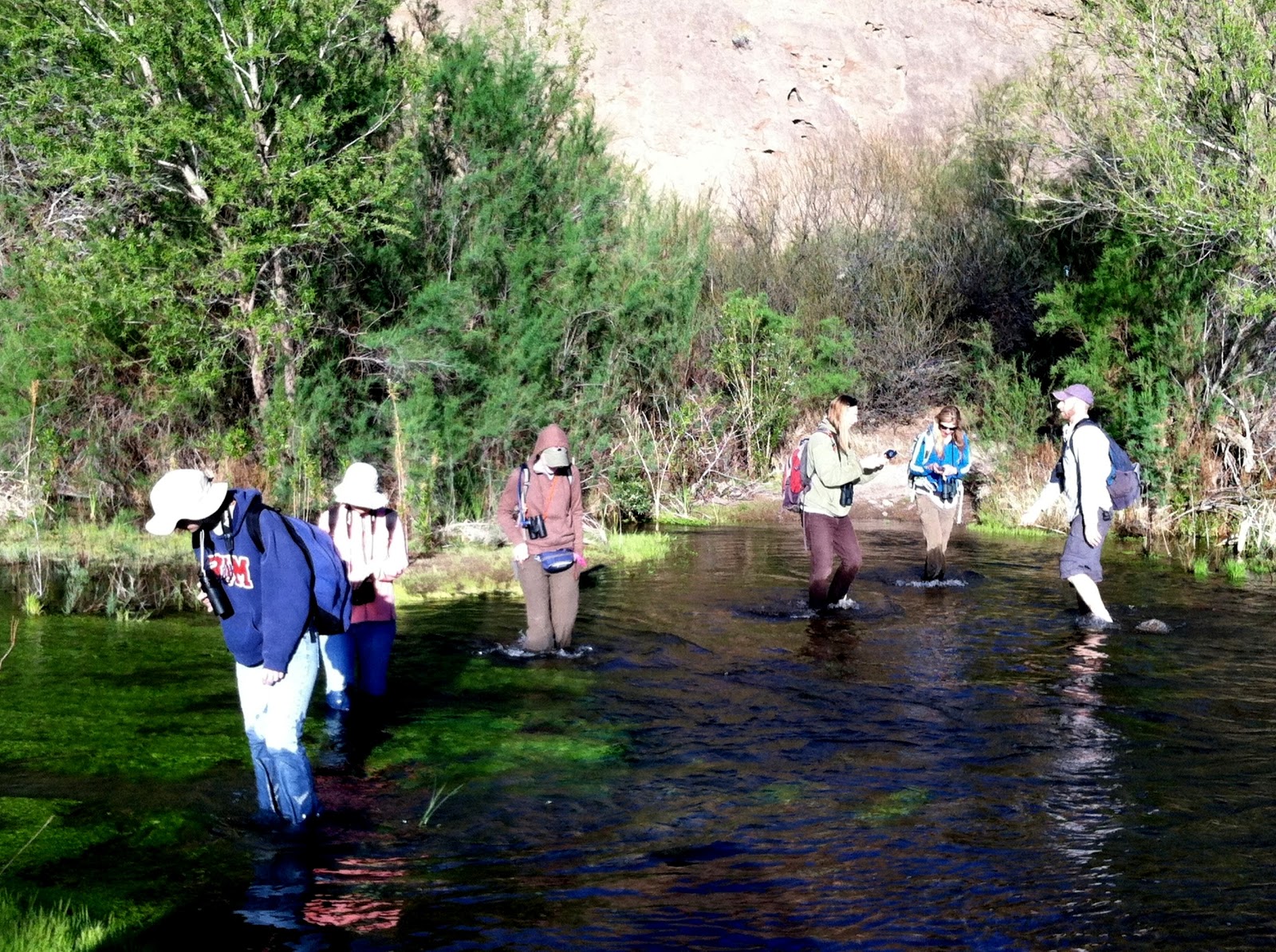 What season is best to bird the area? I recommend late April or early May, when many of the breeders have returned but spring migrants are common, sometimes in large numbers. Summer can be great birding, with a good variety of breeding species, some of which are amazingly abundant (especially Song Sparrow, Yellow Warbler, and Yellow-breasted Chat). Black Rails and Elf Owls are some of the more sought-after breeders. Black Rails will call at night and, sometimes, all day. Listen for them at Mosquito Flats. Elf Owls are common in the area–go out on a spring night and keep an ear out, and you will be sure to hear them. Just remember that they are at the edge of their range here, so please don’t disturb them or play tapes. Remember that summers are hot in the desert, so it’s best to be out early and back to the car by 10-11. Fall is more subdued than spring, but can carry surprises of its own, such as the Northern Saw-Whet Owl found at Kohen Ranch this fall. Winter is more hit-or-miss, with some stretches seemingly birdless until you happen upon a flock, which will typically include many Yellow-rumped Warblers and Ruby-crowned Kinglets. No matter which time of year you visit, be sure to bring plenty of water. Allow plenty of time for exploration and enjoy this beautiful and unique area!