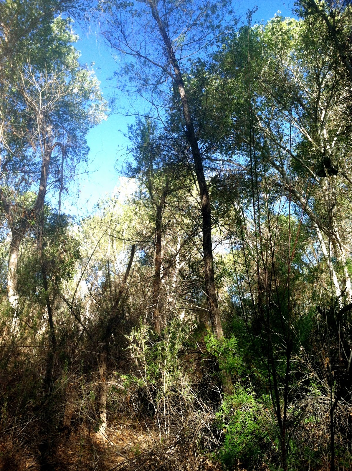 A person walking along the edge of the forest anywhere along Planet Ranch Road is likely to encounter flagging, some of which marks trails entering the forest. I can’t stress enough the importance of staying off these trails. Researchers create and use them for a variety of projects on the refuge. The flagging comes in many colors depending on the project, year, and type of trail. The trails crisscross and backtrack, some lead into ponds or river channels, and many are disused and being reclaimed by the forest. Sometimes the flagging just ends. Navigating these trails requires a knowledge of the flagging systems, a detailed and updated map, and a good handheld GPS unit and compass (not to mention a willingness to crouch, squeeze, climb, bellycrawl, wade, and be scratched up). Recently, hikers entered the trail system at Mosquito Flats, and eventually became hopelessly lost. They managed to find a spot with cell reception and called the Sheriff’s department. The Sheriff’s department flagged their way along the trails, got lost, but eventually (miraculously) found the hikers on the other side of the river, dehydrated but otherwise okay. Don’t try to hike the trails.