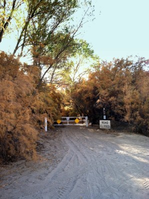 Some caveats. Note that asking a GPS to point you to Planet Ranch Road is not likely to be useful–I’ve heard stories of people turning up in random locations in Parker, and also being pointed to the other end of Planet Ranch Road, a long drive through the desert to a section of the river that is privately owned and not accessible. The road once ran all the way from Lake Havasu to Planet Ranch, but was washed out in floods several years ago. Many maps still show it as it was, but it now ends in a gate at the red triangle shown on the map above.
