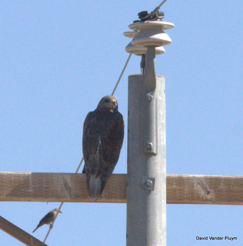 Ferrugunios Hawk, the “Regal Eagle,” a magnificent bird and a species I never see often enough. Though the light morph birds are beautiful, I am always amazed at the beauty of intermediate/dark morph birds. The rufous tones to the dark plumage is always striking to me. The dark plumage also always seems to make them look bigger. One individual in the Parker Valley that has been present for the past two years has been reported as a Golden Eagle a couple of times, it looks that big! Most dark birds that are seen are actually intermediate or rufous morphs and not true dark morphs which make up roughly 1% of the population, while intermediate morphs make up ~5% (Wheeler 2003).