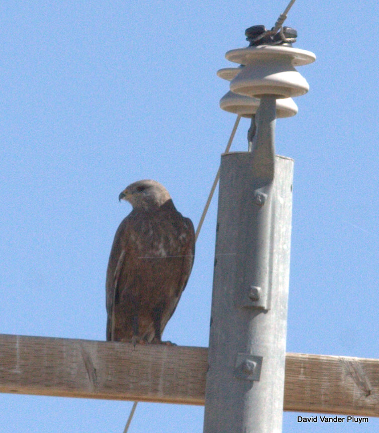 This winter there have been a few around the Parker Valley, including the returning dark intermediate morph bird on Wilson Rd, but we have not had the large numbers of birds being reported around Yuma this winter, e.g. 50+ birds reported in a day by Henry Detwiler. However on 17 Feb Lauren Harter and I, along with Steve Ganley and Larry Norris, saw this unusual individual in the southern Parker Valley by Navajo Rd. The bird was interesting with a gray head and grayish wash to the chest, and very rufous underparts. Lauren had seen this same individual last winter in the same area, but was unable to adequately photograph it. This is the only such bird we have seen, and I was only able to find one photo like it on the internet and none in our references. I was able to get a few photos, though the bird did not allow close approach as seems typical of the species.