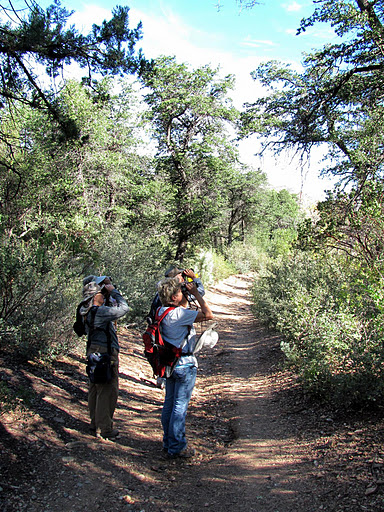 The next morning, the temperature gauge didn’t budge from 37, and the skies were overcast. Since we didn’t have enough time to hike Mt. Trumbull (and it didn’t seem worth the effort in any case), we tried the drive up Mount Logan, stopping periodically at likely birding spots. It was on this road that I got the magic 300, my goal for my Mohave County Big Year, in the form of a flock of 13 Wild Turkeys in the road!